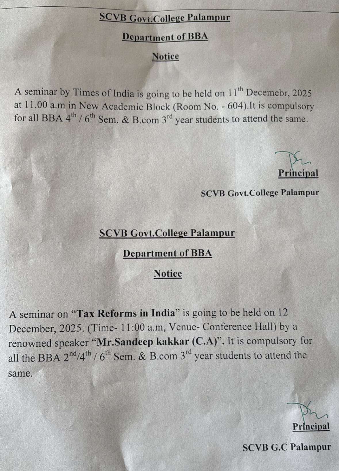 SCVB Govt. College Palampur offers 3 -year undergraduate degree i.e. Bachelor of Business Administration since 2009 onwards. BBA is ideal for students interested in exploring careers in Marketing, Sales, Finance, or HR. As college offered specialization like Marketing, Finance, HR and operations Research etc.